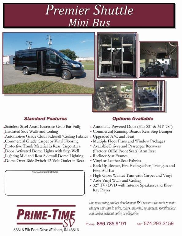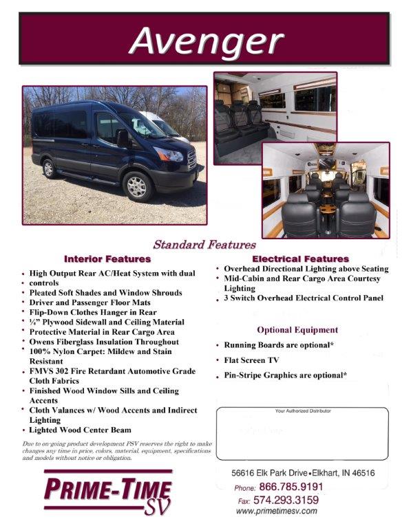 Prime-Time Specialty Vehicles is a country leader in producing hundreds of different van conversions. If you are looking for a quick way to look at all of our products in one file click below and download the file! This will provide you a brief summary about our company, staff, and the majority of the products we can build special for you!